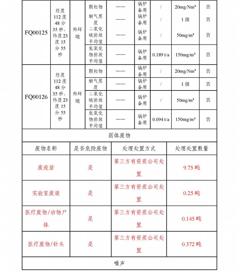 肇庆大华农生物药品有限公司环保信息