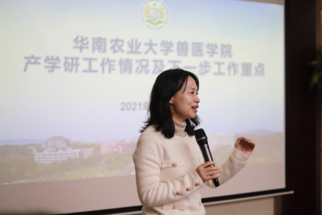 冯耀宇在会上介绍了兽医学院产学研情况,并针对未来双方合作提出建议:“学院和企业都处于新的发展阶段,双方有良好的合作基础,要发挥好各自优势,实现资源互通和共同发展,希望双方未来在人才培养、教学科研和社会服务等方面深化合作的形式和内容。”