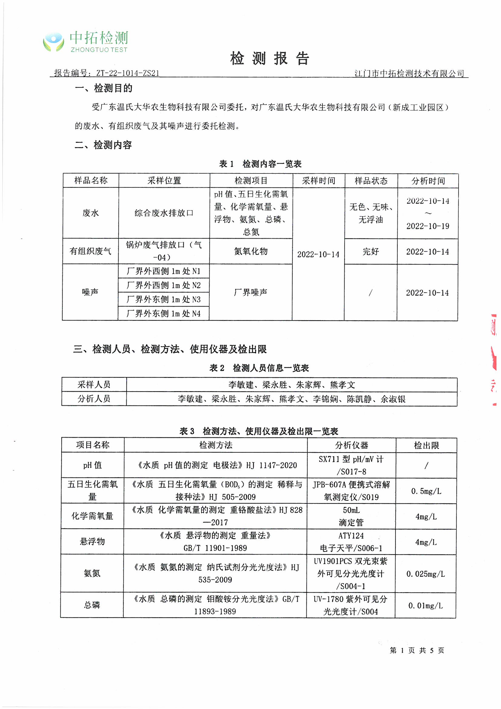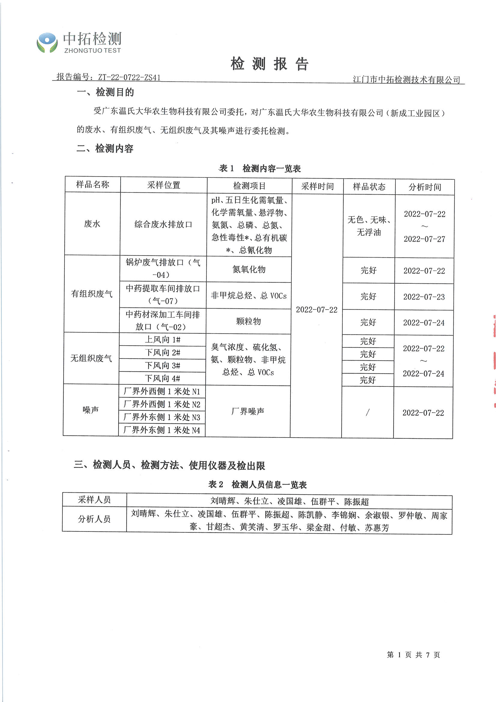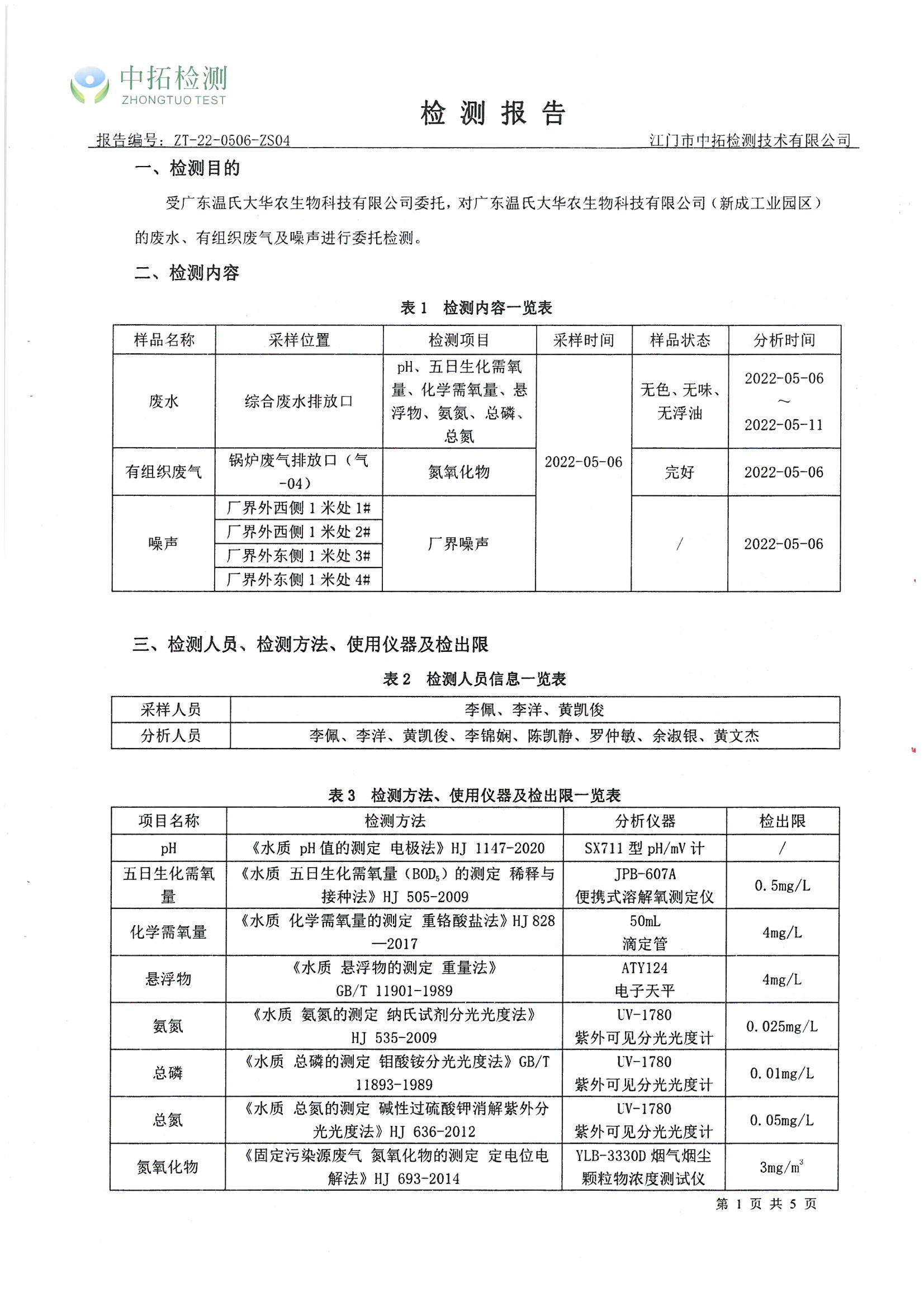 广东温氏大华农生物科技有限公司(工业园区)环境监测报告2022