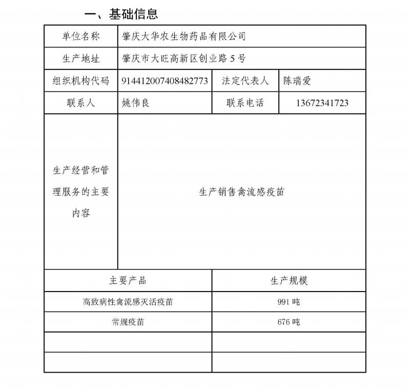 肇庆大华农生物药品有限公司环保信息