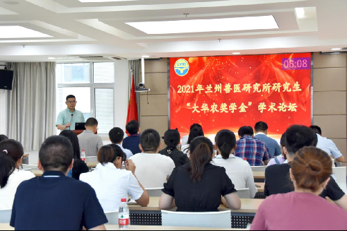 2021年7月20日,2021年(第八届)“大华农奖学金”学术论坛在兰州兽医研究所综合楼五楼学术报告厅举行。肇庆大华农生物药品有限公司副总裁王阿明、兰州兽医研究所所长郑海学、副所长罗建勋出席论坛开幕式。兰州大学基础医学院方泉教授、兰州大学生命科学学院张文华教授、中国农业科学院都市农业研究所王琦研究员及我所朱紫祥研究员和牛庆丽副研究员担任论坛评委。我所博硕士研究生及第五届优秀大学生暑期夏令营营员共计60余人参加本次论坛。