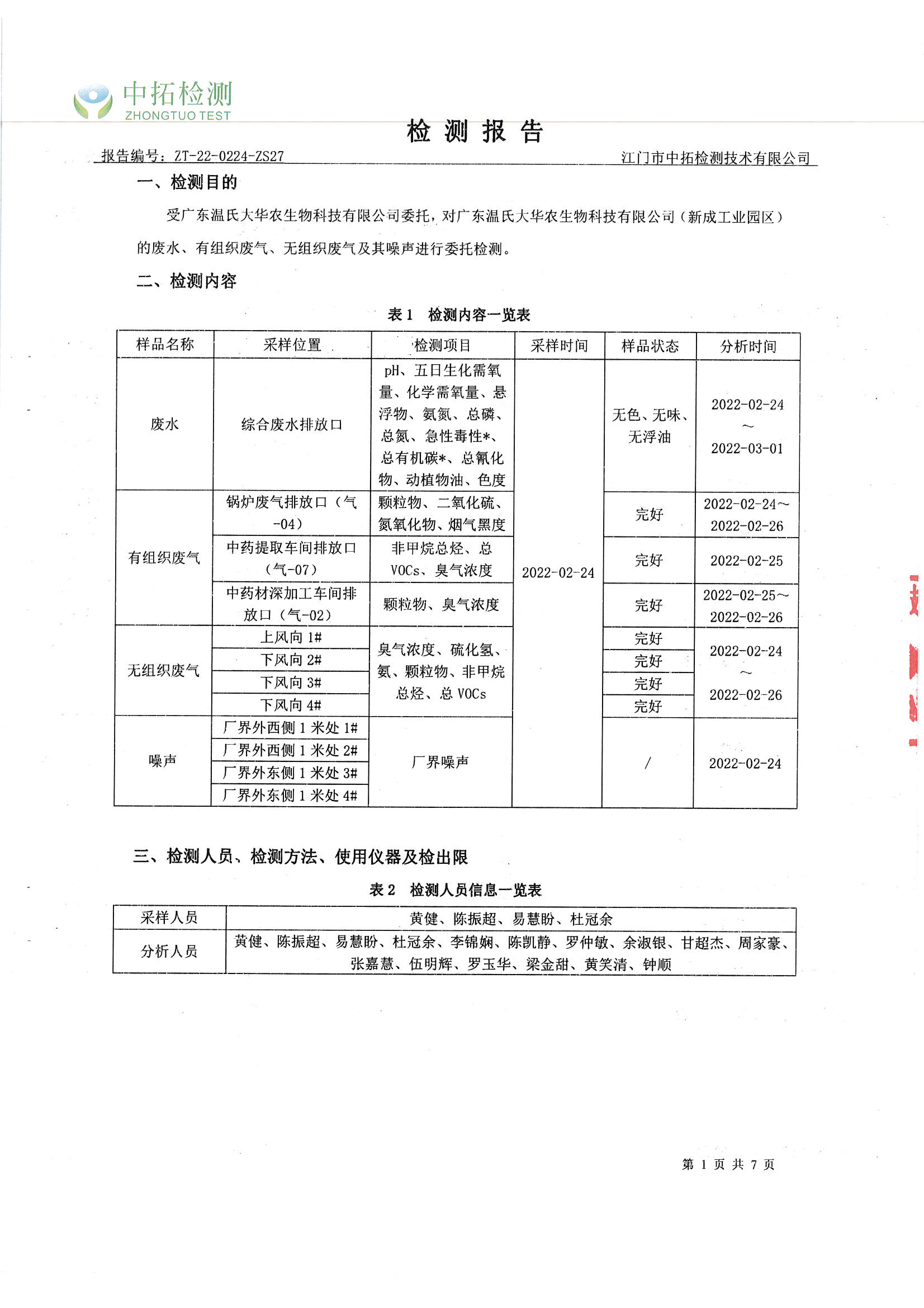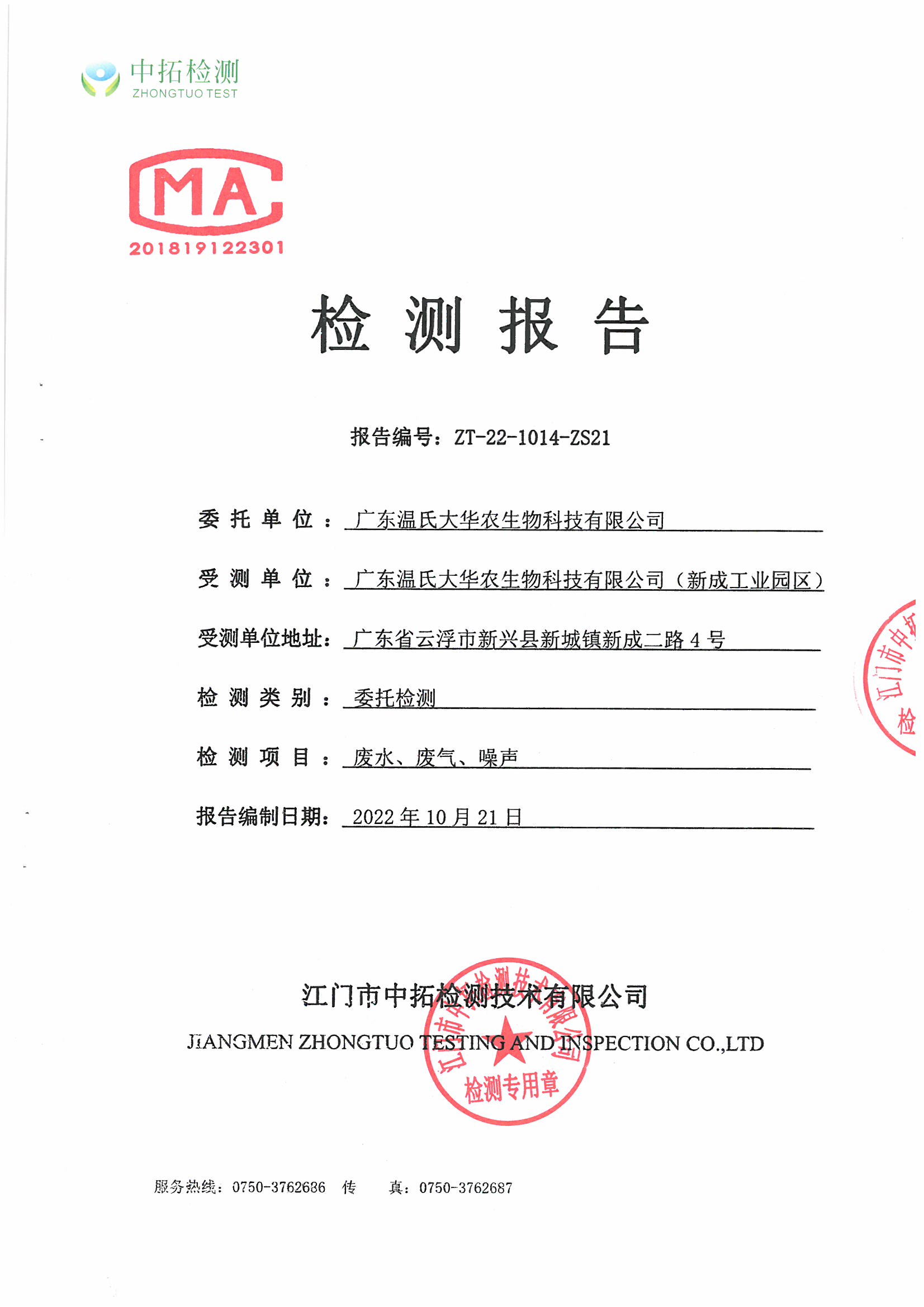 广东温氏大华农生物科技有限公司(工业园区)环境监测报告2022